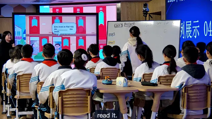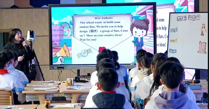 (最后输出环节,AI赋能直播间,学生身临其境地介绍自己设计的公寓,在感叹学生灵动的创意的同时,我也看到了科技与教育深度融合下的高效互动课堂)