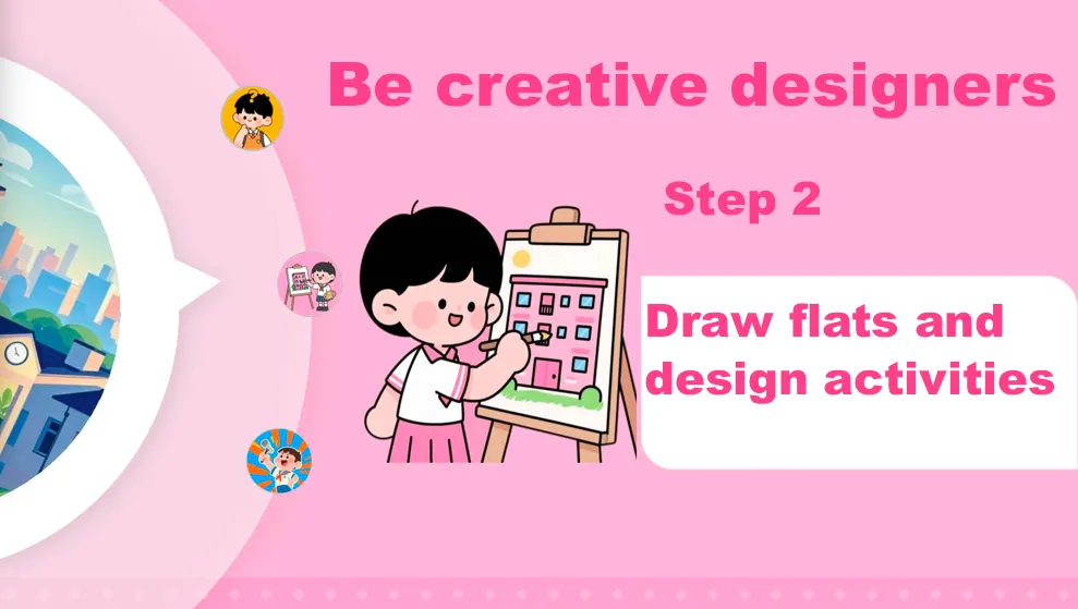 OK, step two. Be creative designers. Draw flats and design activities. Your activities can be creative and different.