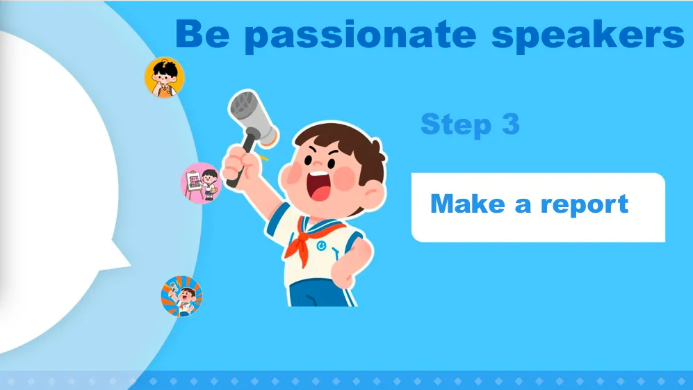 You can come here to make your report. And all of you can give likes to your favorite flat. And you can give your likes according to their language, confidence, performance, pronunciation and content. Are you clear? OK, I give you ten minutes to prepare. Now it's time for you. Let's design. OK, be quick.