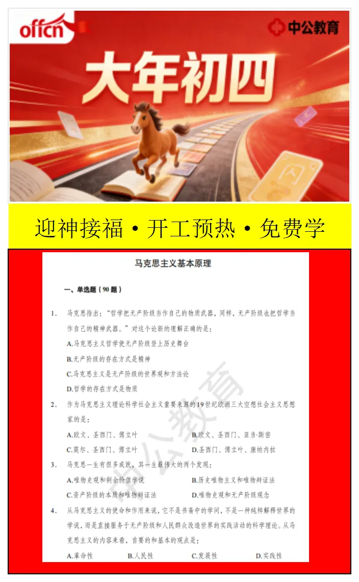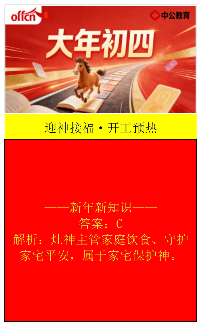 大年初四,迎福纳祥,万事兴旺。愿新的一年,好运常伴左右,美好如期而至。对于备考的你来说,春节是休息,更是为梦想蓄力。新的一年,愿你目标坚定、备考高效,在考试中脱颖而出。汕头中公教育将以专业师资、本土教研和优质服务,陪伴每一位潮汕学子稳步前行。祝大家学业有成、前程似锦,马年一路开挂!