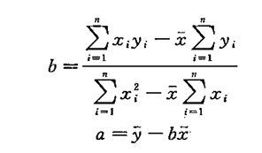 整体思路是:X与Y可求得平均值,先用下式求b,再用b求a,完成公式