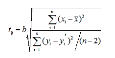 tb服从t 分布,通过查 t 分布表查得显著水平为α ,自由度为n-2 的数值 t(α /2,n-2)。 若 tb的绝对值>t,表明 x 和 y 之间的线性假设合理;若 tb的绝对值≤t,则假设不合理。