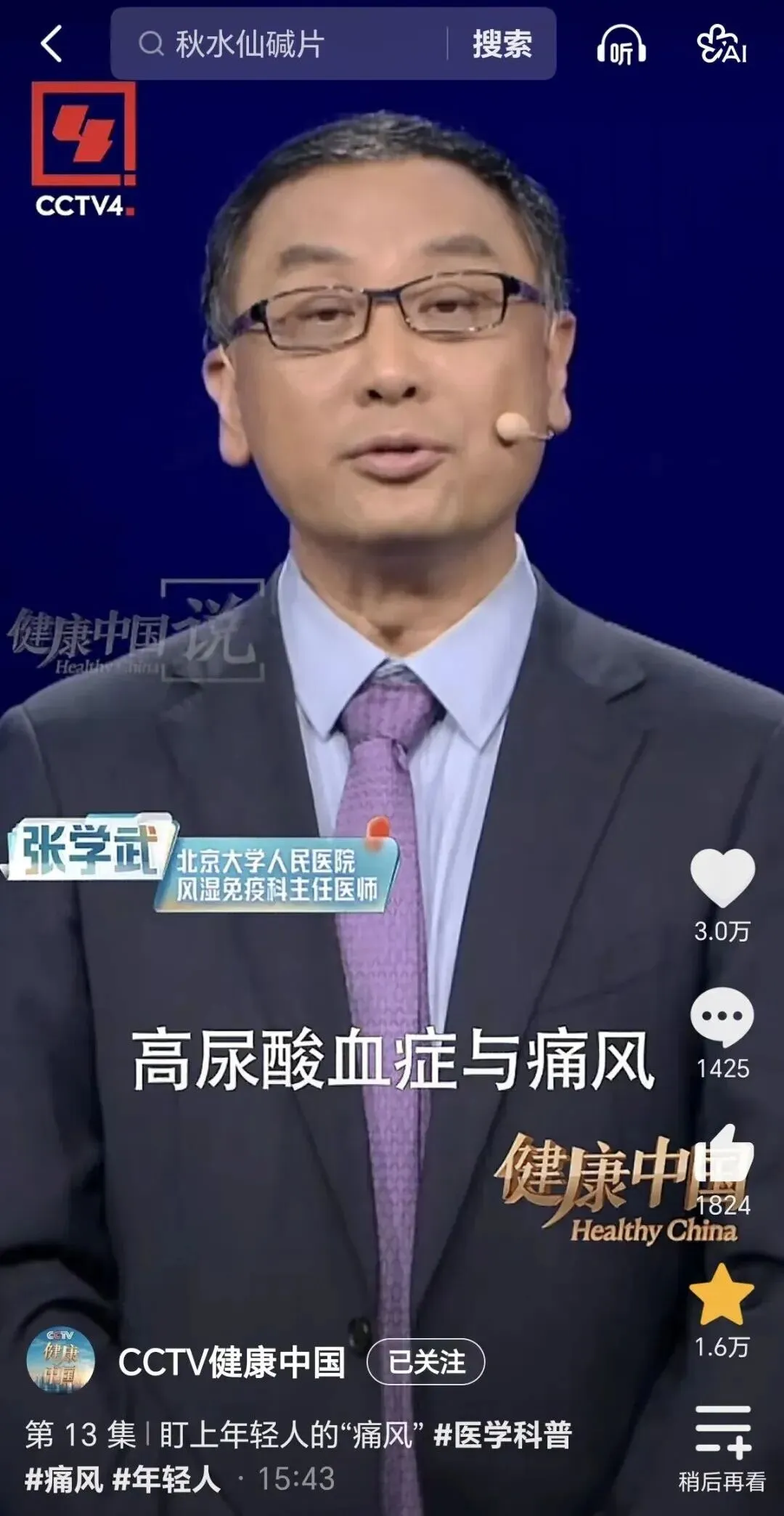 上次看到钟南山院士走路一瘸一拐的,他自己声明是因为痛风发作。他的地位和咖位不缺医疗资源,但是疾病就是这样病来如山倒,病去如抽丝。