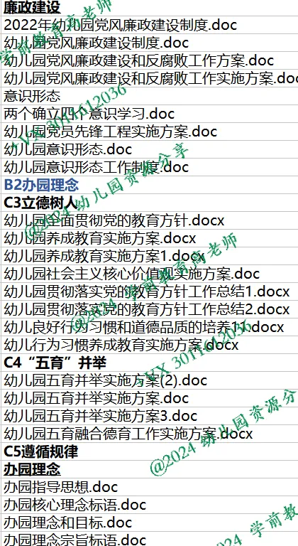 本套资料根据幼儿园督导评估办法最新细则整理而成,分A1办园方向—A2保育与安全—A3教育过程—A4环境条件—A5队伍建设—A6内部管理— A7民办园附加指标,对各观测点均有很好的体现,对幼儿园提高保育教育质量有很好的作用。@+VX 3011612036,全套1003个文档,分三级目录已经归类好。