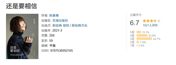 读陈鲁豫的《还是要相信》,最大的感受是通透。与其说她在输出答案,不如说她拆掉了许多人为搭建的“标准答案”。