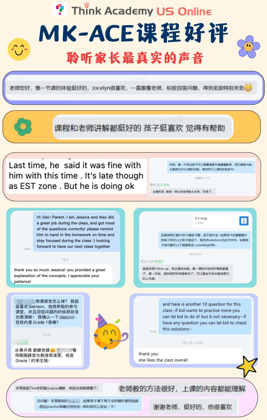 在过去的MK备考冲刺课,Think获得了家长们的一致好评,学生们也取得了优异的成绩。