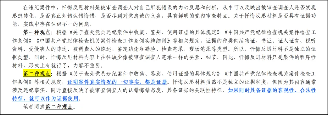 ➡︎忏悔反思材料能够用以证明案件真实情况,如果同时具备证据的客观性、合法性特征,就可以作为案件证据使用,用于辅助证明违纪事实。
