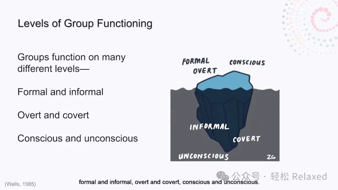 团体在许多层面上发挥作用,正式的和非正式的,公开的和隐蔽的,有意识的和无意识的。Bion比昂注意到团体生活中的两个主要趋势。