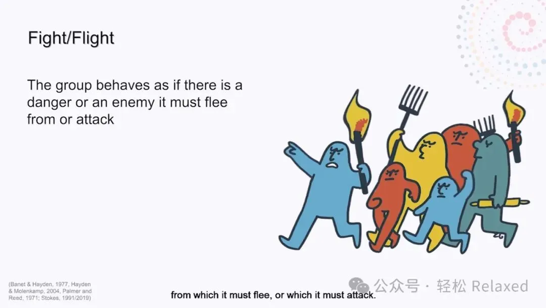 Bion比昂描述了三种类型的基本假设群体:依赖、战斗-逃跑和配对。
