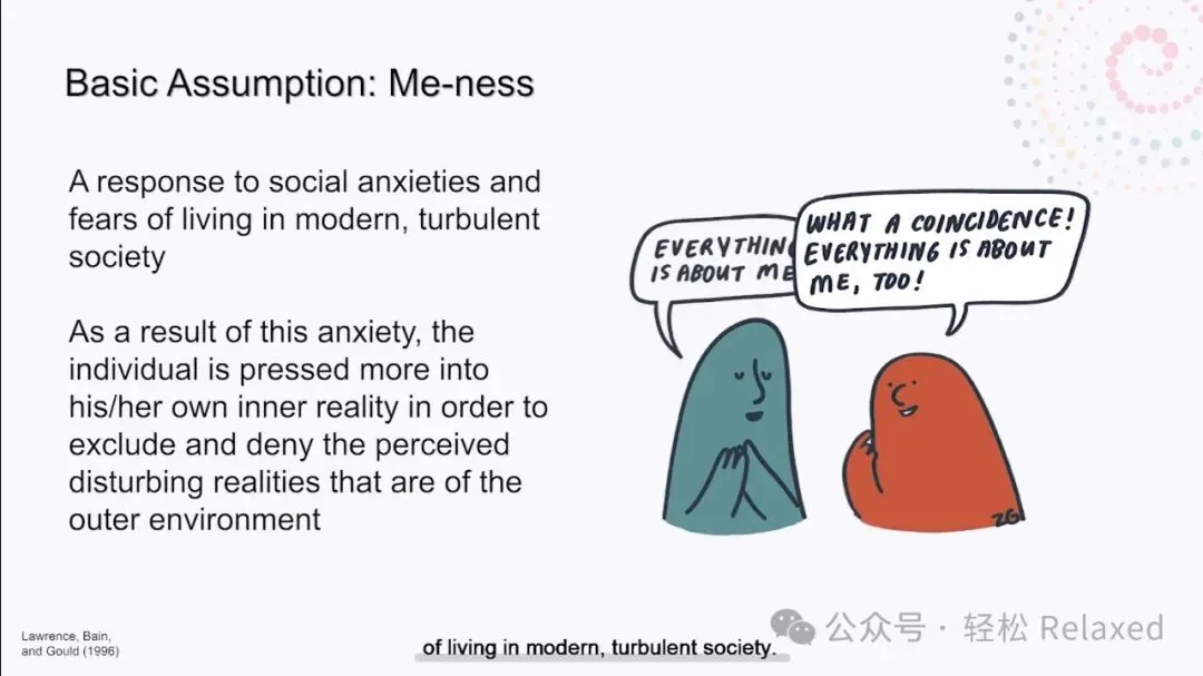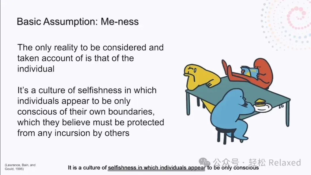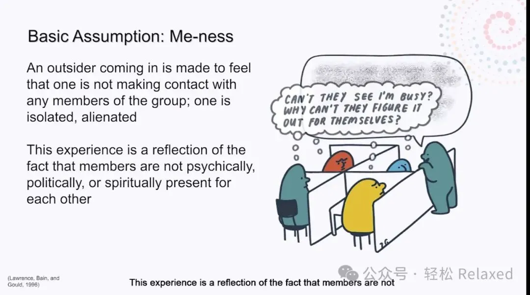 Bion比昂对个体与群体之间的关系很感兴趣。他认为,归属于任何团体都是会产生固有的冲突。一方面,我们渴望成为比自己更大的事物的一部分,渴望归属。但与此同时,我们担心在群体中失去个人身份。