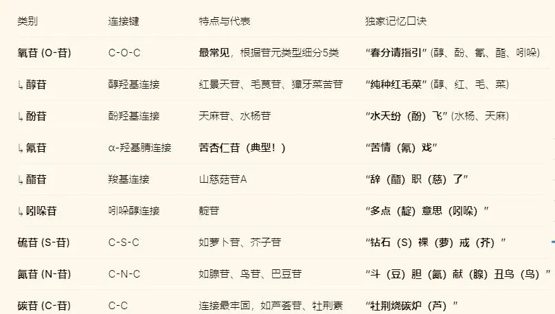 1.记住:“春(醇)分(酚)请(氰)指(酯)引(吲哚)”,帮你锁定O-苷的五大类型。