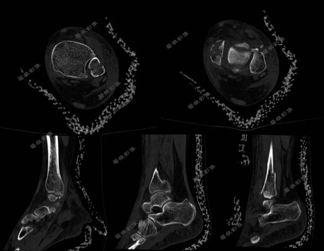 ③踝关节诸骨纹理清晰,周围软组织层次可见。