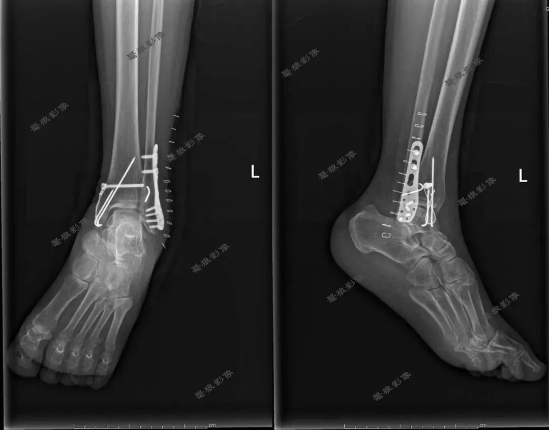 1、左三踝骨折内固定术后;