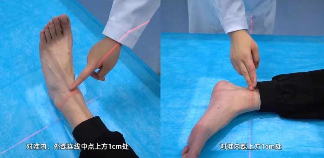 ④中心线:对准内外踝连线中点上1cm,与探测器垂直。