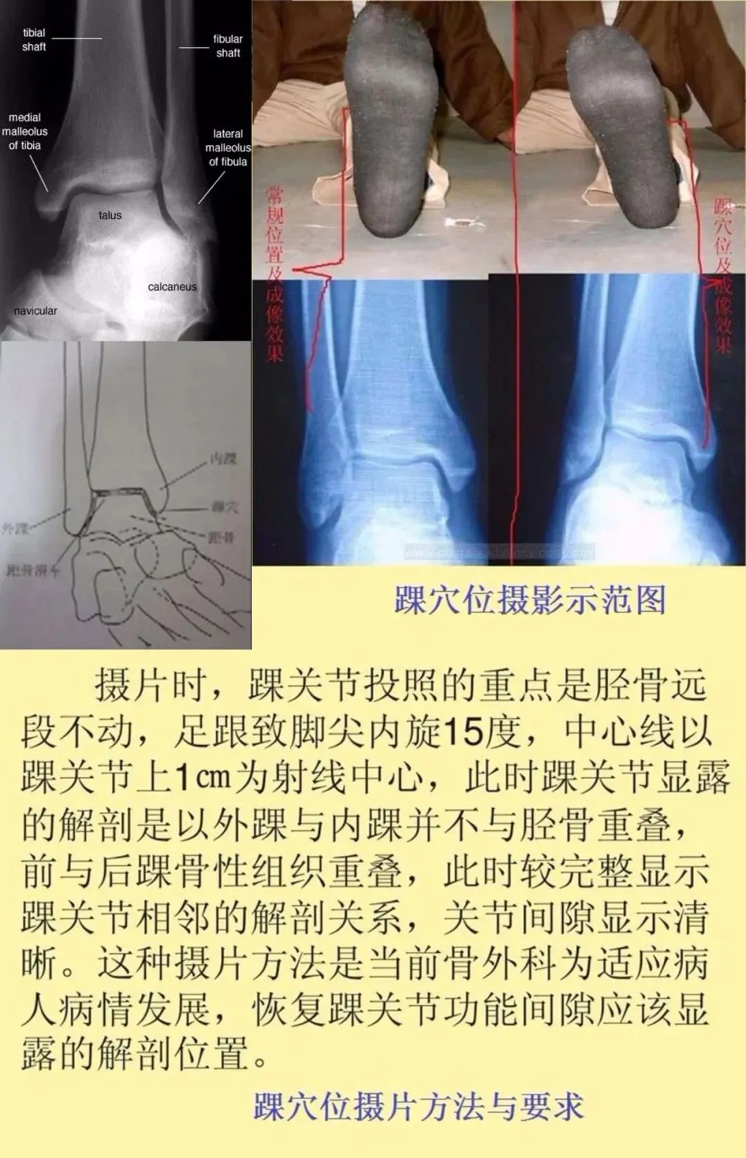 ③外踝上1cm置于胶片中心。