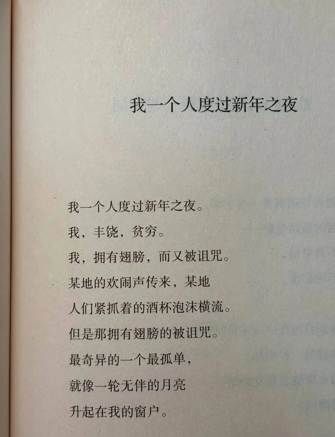 我一个人度过新年之夜。我,丰饶,贫穷。我,拥有翅膀,而又被诅咒。
