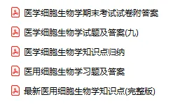 今天分享的资料是「0035-医用细胞生物学」电子版+学习笔记+知识点总结+期末考试重点+复习资料+习题集及答案+名词解释+历年真题试卷及答案+题库及答案+复习重点+思考题及参考答案+公式总结+考试重点基础题+知识总结+高清PDF可打印+免费分享!