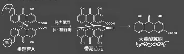 (3)关键考点:番泻苷是前体药物,需经肠道菌群β-糖苷酶水解为大黄酸蒽酮才起泻下作用。
