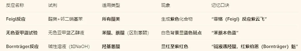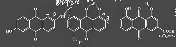 ④其他:蒽酚/蒽酮(如新鲜大黄中含,不稳定,久贮氧化为蒽醌)。