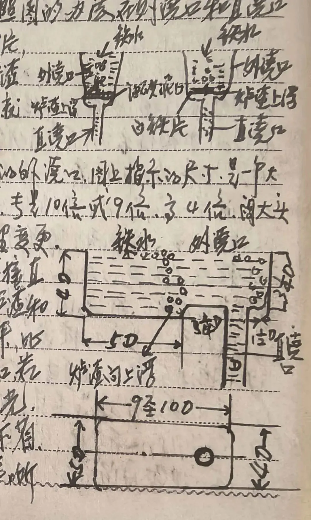 丙、闸门搂(?)渣浇口。外浇口加用油砂泥心,割除炉渣很有功效,用的地方很多。
