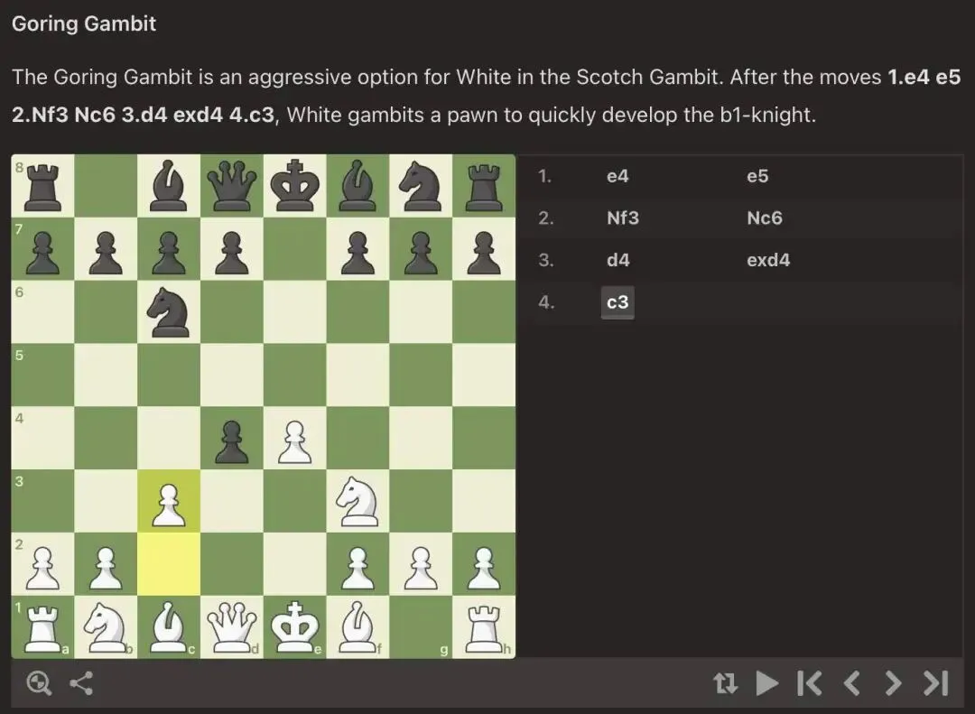 【Scotch Gambit、Goring Gambit变例】https://youtu.be/QEYybZ8FYGE?si=Q2ZFBEM6i63IGd9R