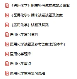 今天分享的资料是「0056-医用化学」电子版+学习笔记+知识点总结+期末考试重点+复习资料+习题集及答案+名词解释+历年真题试卷及答案+题库及答案+复习重点+思考题及参考答案+公式总结+考试重点基础题+知识总结+高清PDF可打印+免费分享!