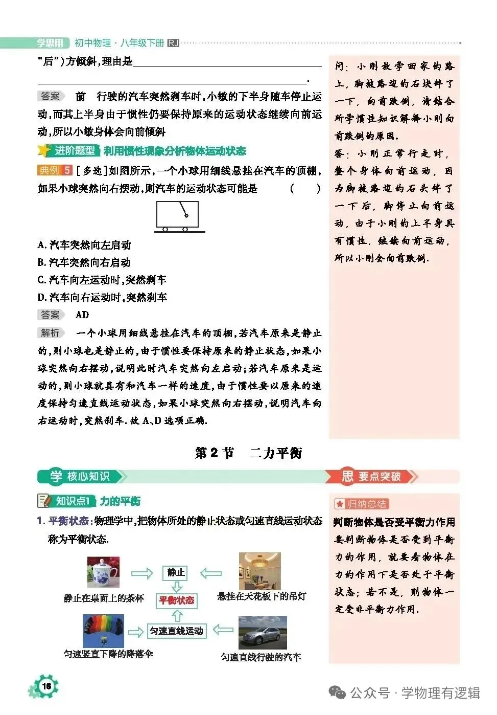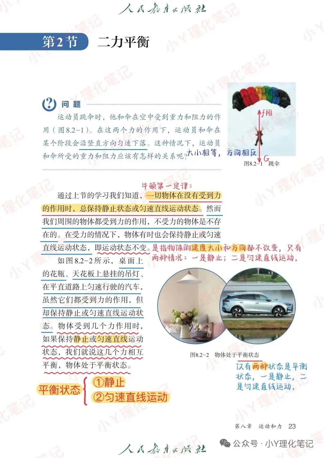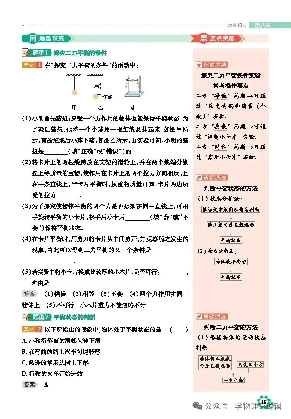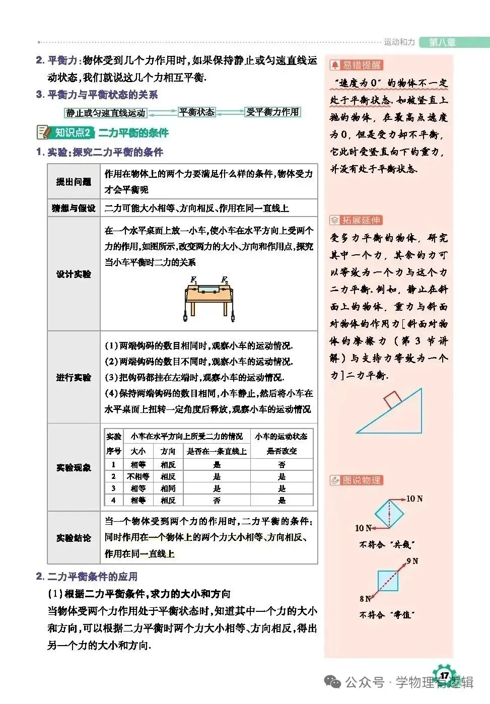 >八年级下册物理寒假学习笔记8.2二力平衡教材全解及基础训练题