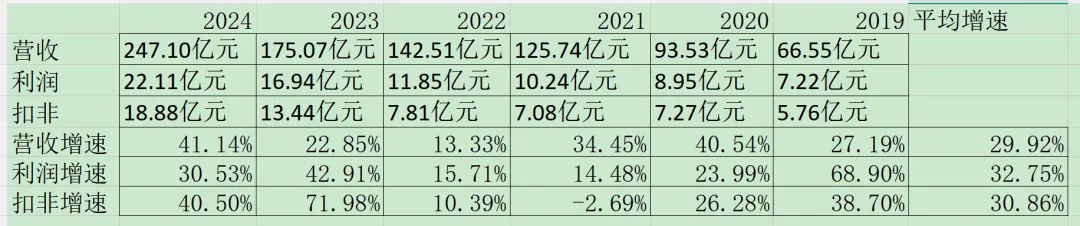 公司营收247亿,同比增长41%,扣非净利18.8亿,同比增长40.5%,每年扣非利润少3亿左右。各分类营收和增速看上图,速度相当惊人。