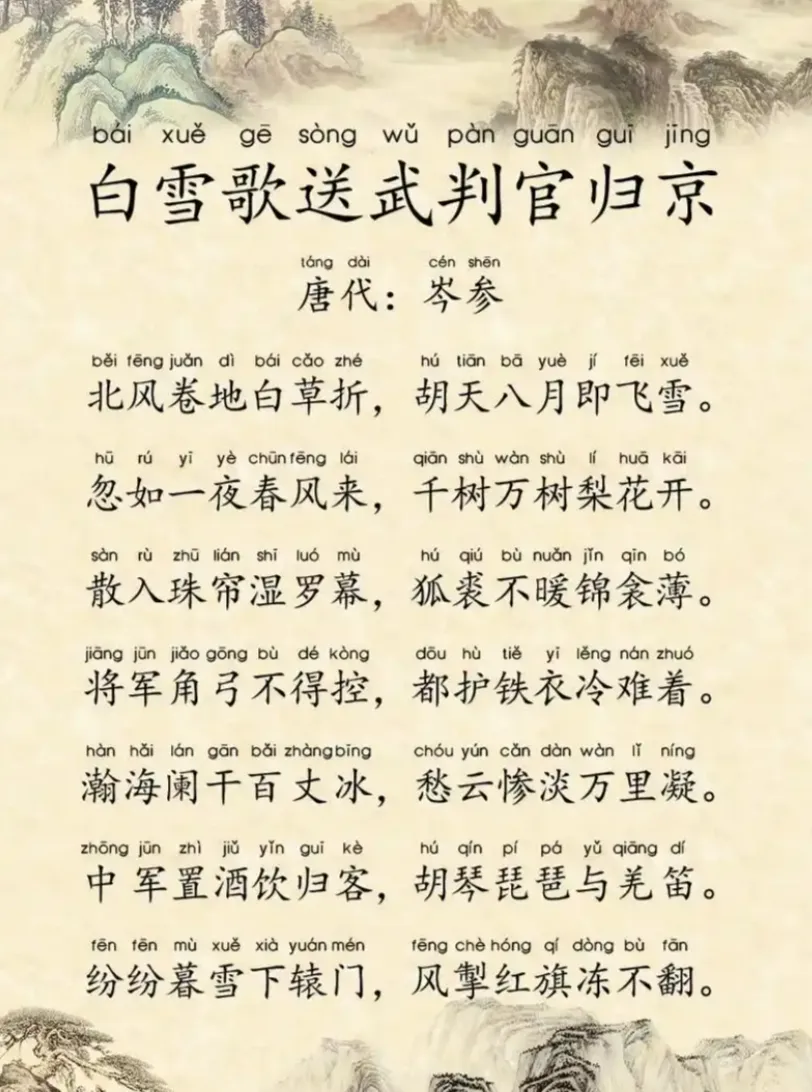 白雪歌送武判官归京