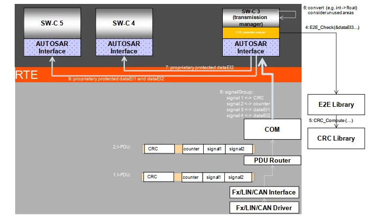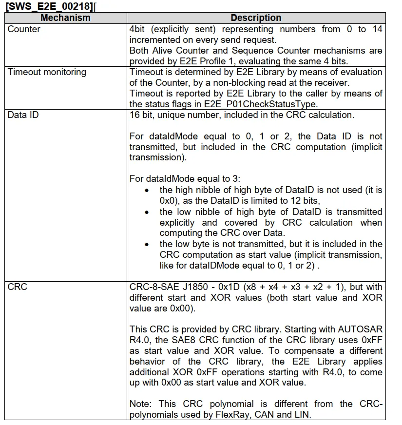 E2E保护的概念:E2E保护属于“功能安全”范畴,主要是为了保护运行时与安全相关的数据,防治因通讯链路内故障导致的错误。这些故障通常包括:随机性硬件故障、EMC干扰以及软件自身导致的系统故障等。