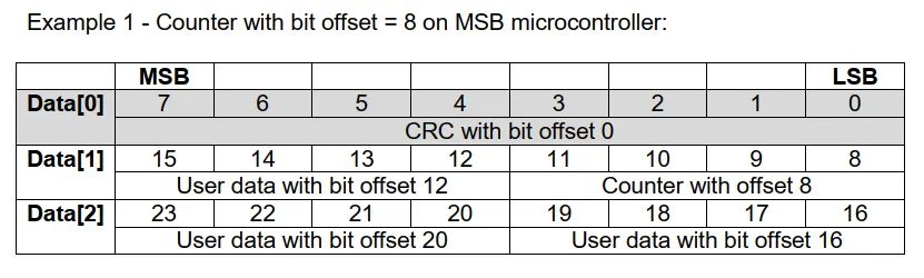 比如:CounterOffet,CRCOffset是指Counter和CRC数据的起始位,一般是4的倍数和8的倍数,DataIDNibbleOffset DataID 的起始位,DataIDMode是指CRC计算方式的不同,从0-3有4种。