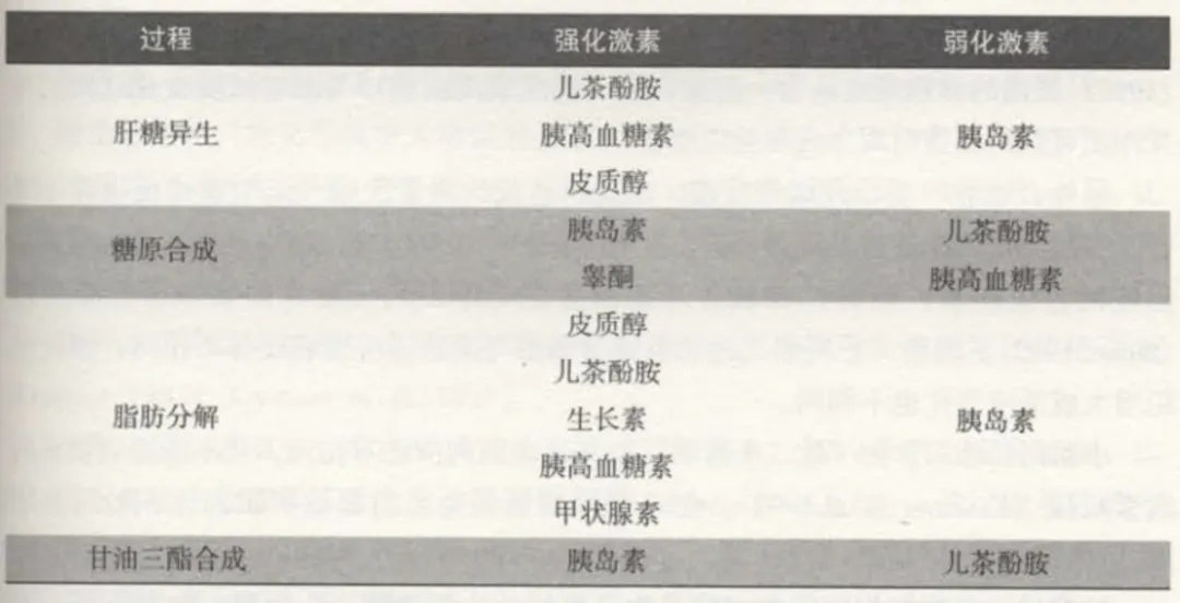 1、儿茶酚胺:功能调节,包括心血管反应、支气管气道发声、精神运动活力、碳水化合物与脂肪酸代谢及食欲。儿茶酚胺对压力反应,包括运动反应(与其他系统一起)引起的血压和心率升高以及控制合理血流、调整血液再分布非常重要。训练或过度训练会引起血清中 儿茶酚胺浓度或受体敏感度的变化,有可能造成血压异常或血液分布异常。儿茶酚胺对于代谢,尤其是碳水化合物氧化、脂肪酸的代谢影响深刻。