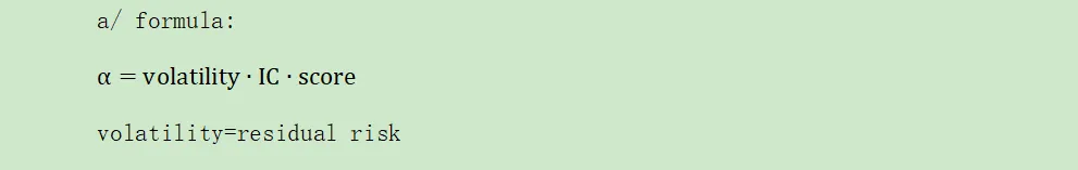 The α should have mean 0 and standard deviation(scale) of volatility*IC.