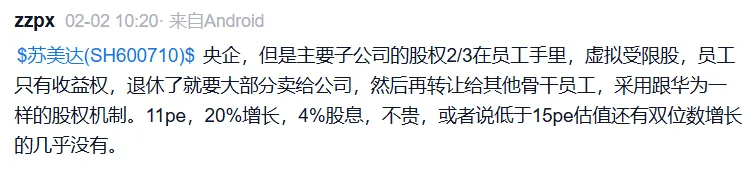 也就是柴发和船舶业务,上市公司间接持有35%的股权,剩余65%的股权有39-40%在苏美达工会的手中,还有25-26%在公司个人员工手中(看了最新数据,这两家公司剩余65%股权都是苏美达工会持有)。