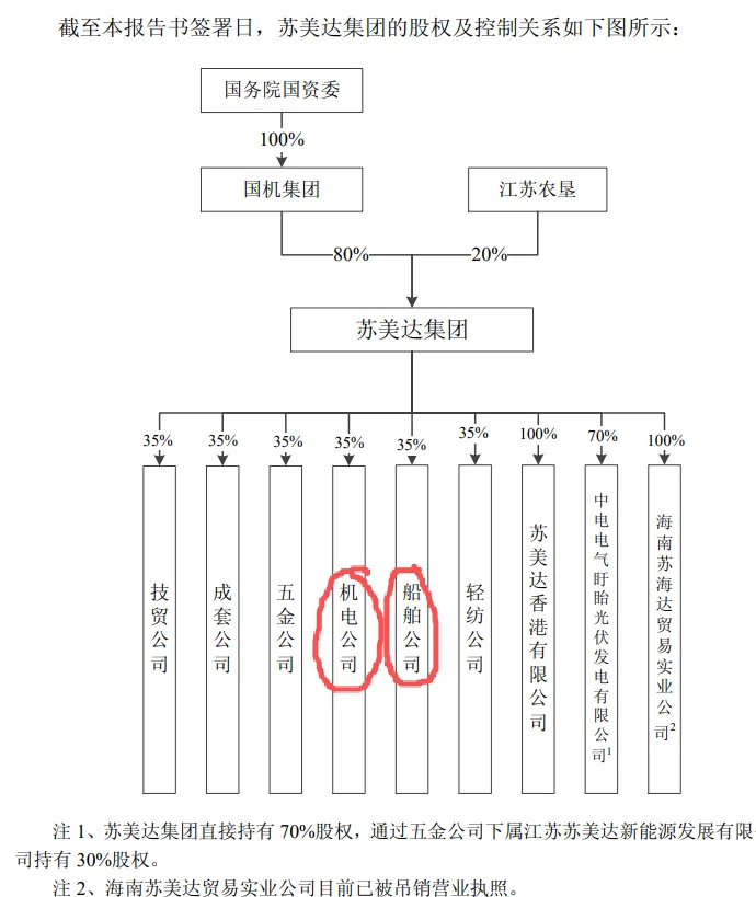 苏美达船舶公司,主要负责公司造船业务,重组前股权结构如下