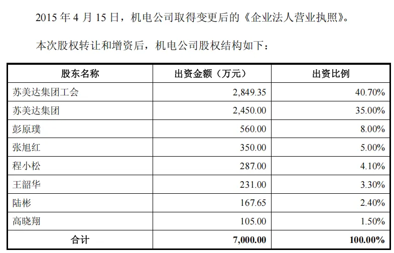 苏美达机电公司主要负责公司的柴发等业务,重组前股权结果如下,