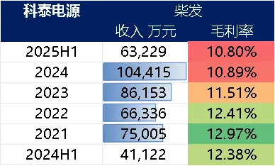 科泰电源柴发收入比较少,2024年是10.44亿,是四家公司里面最少的,毛利率比潍柴重机柴发机组要高,如果看整体是和潍柴重机相当。