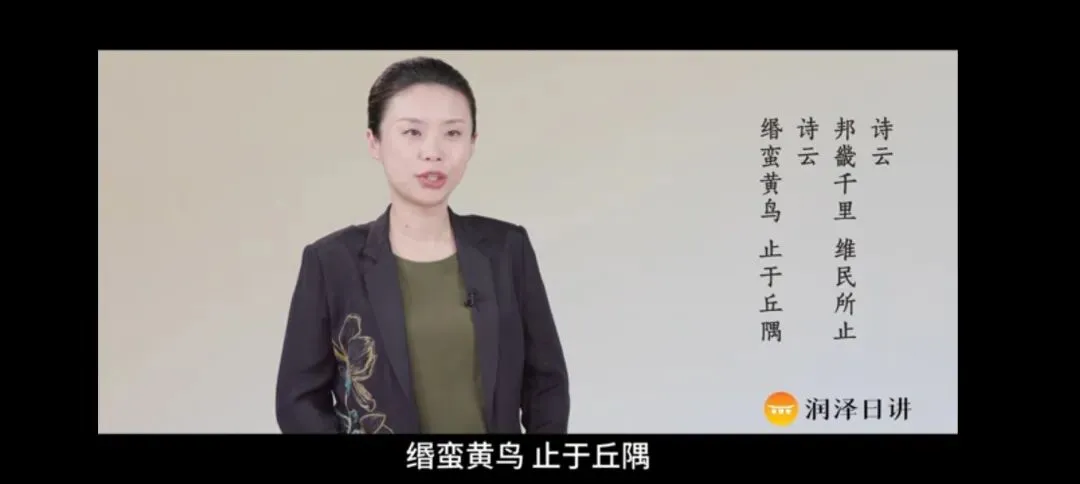 1.诗云:邦畿千里,维民所止。出自《诗经·商颂·玄鸟》,大意说:国家的疆域有数千里,这是人民居住的地方,人民是国家的主人。成汤创立商朝,他的子孙们也不敢懈怠,其中要数殷高宗武丁最为贤明了,《商颂·玄鸟》描绘的就是武丁治理下的商朝疆域辽阔,百姓安居四方来朝的场景。 2.诗云:缗蛮黄鸟,止于丘隅。节选自《诗经·小雅·緜蛮》的第二节,讲的是有一只漂亮的小黄鸟栖息在山丘的一角,哪敢害怕走远路,只怕不能快快跑,希望有人能给它水喝,给它饭吃,循循善诱,帮它明理。