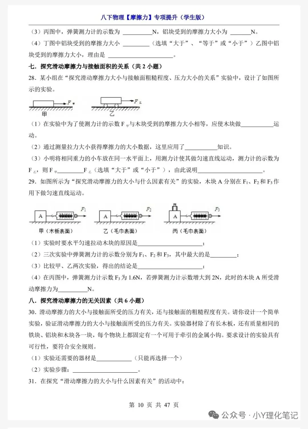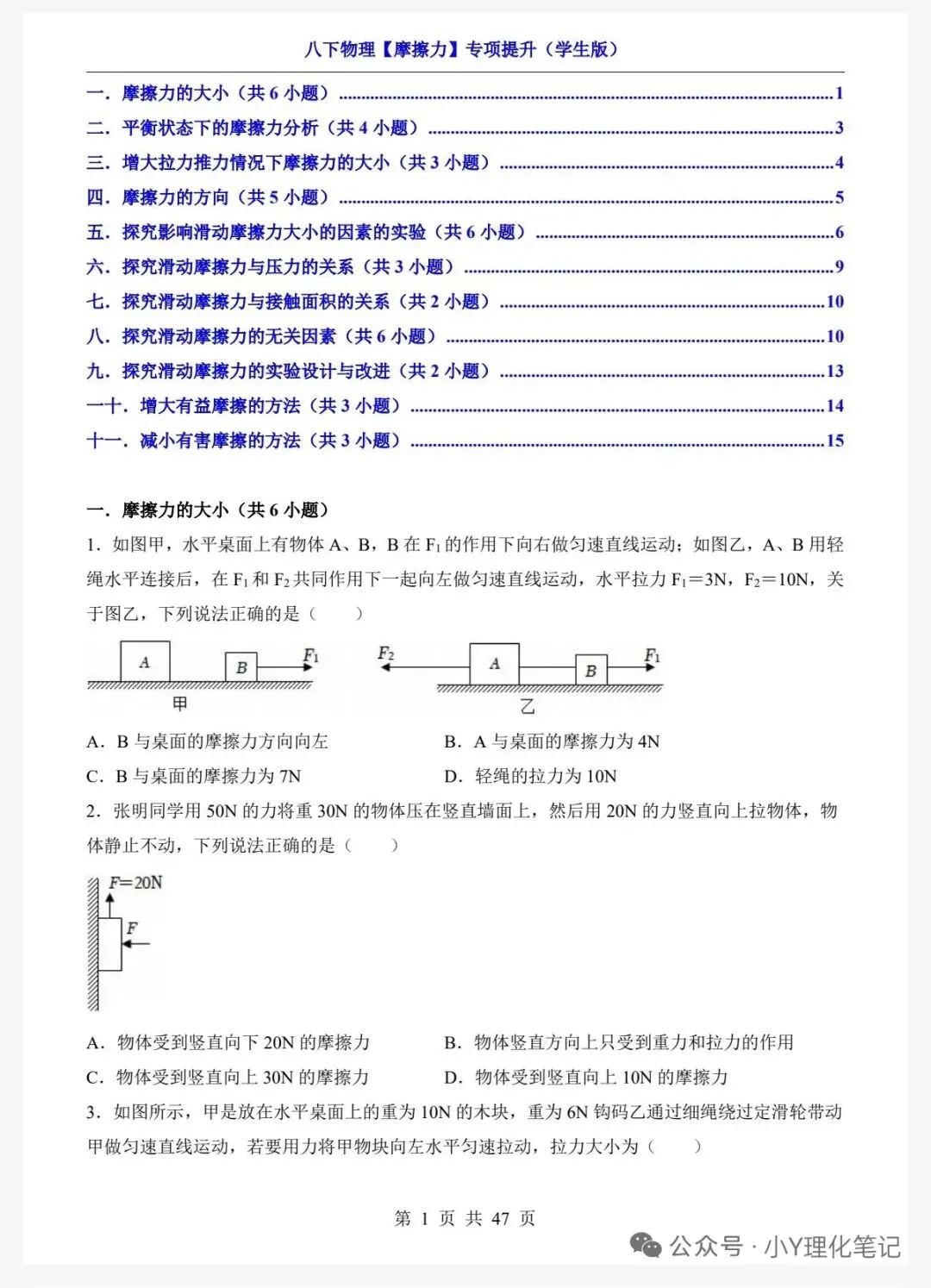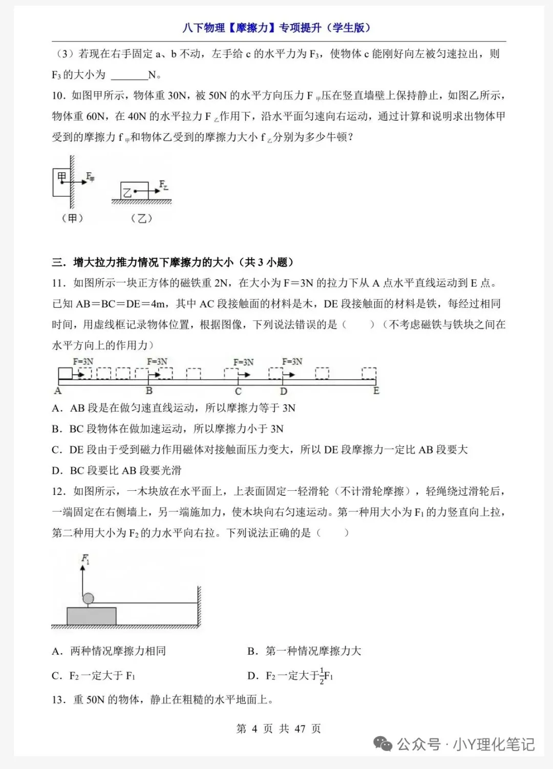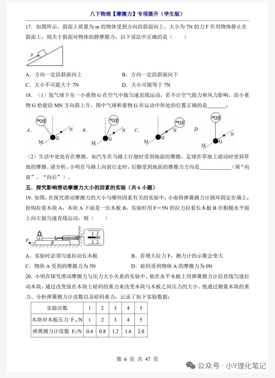 >八年级下册物理学习笔记8.3摩擦力练习题