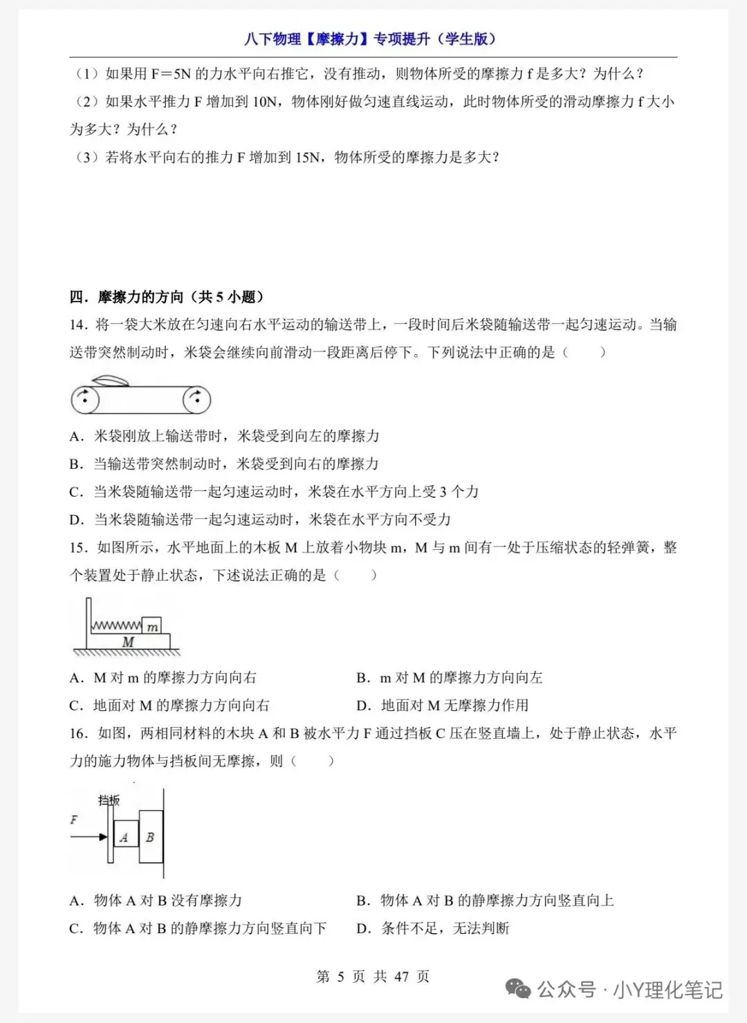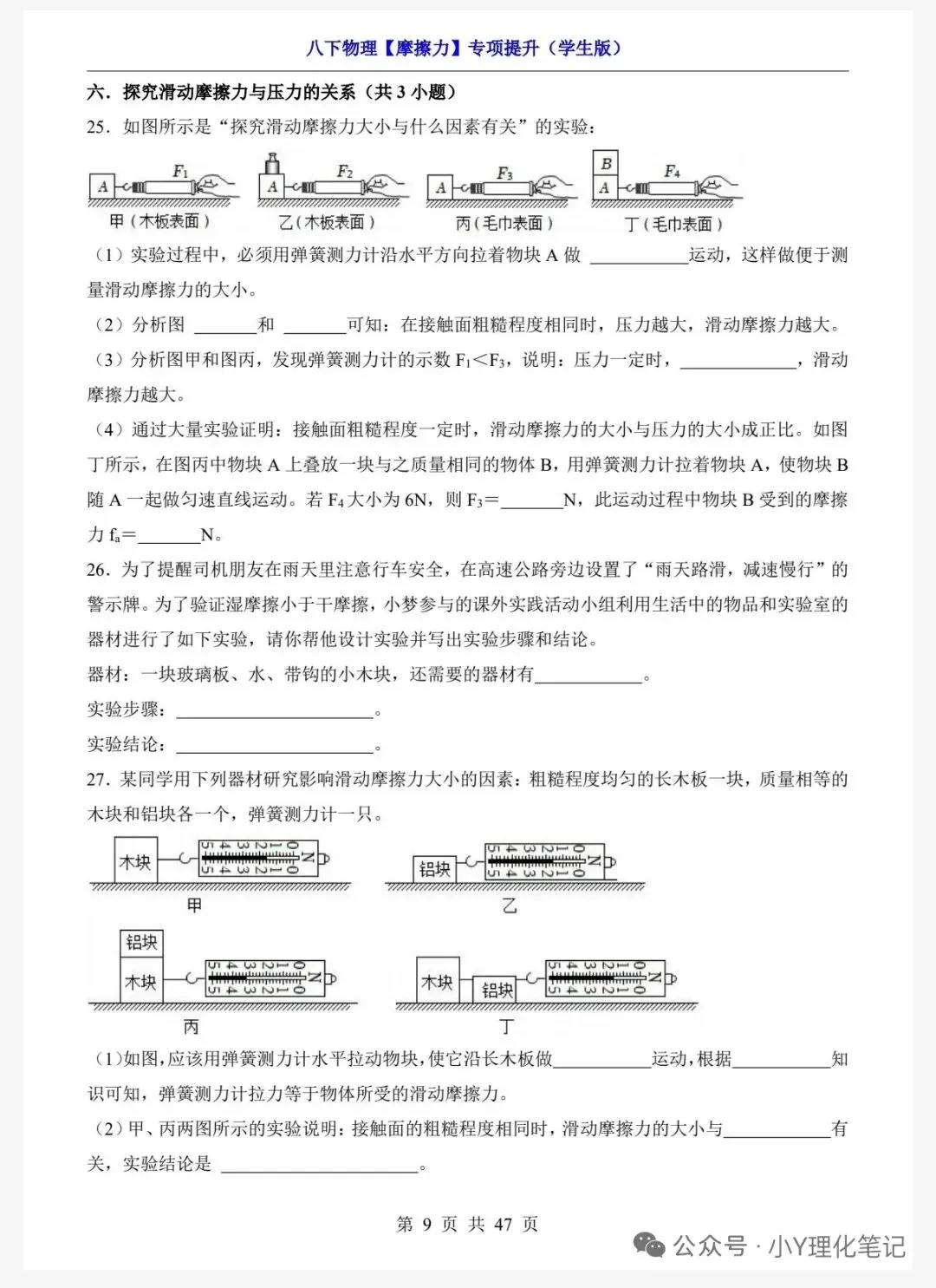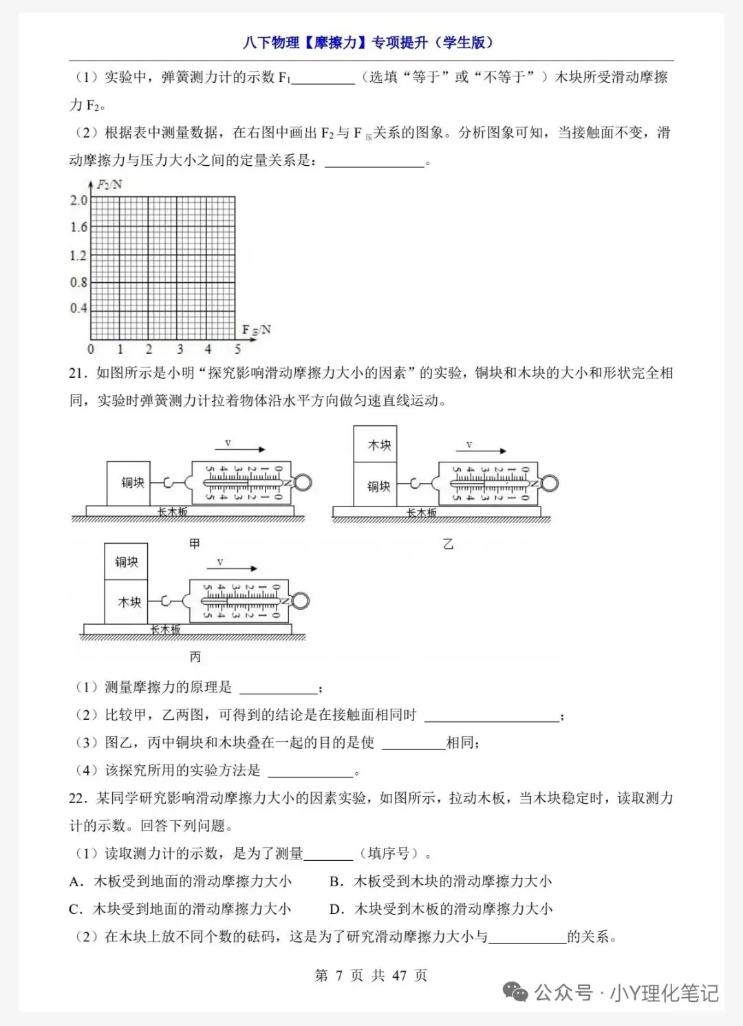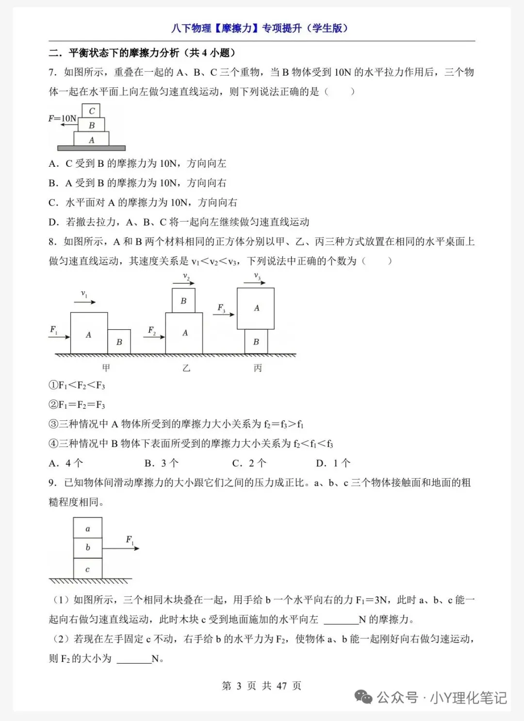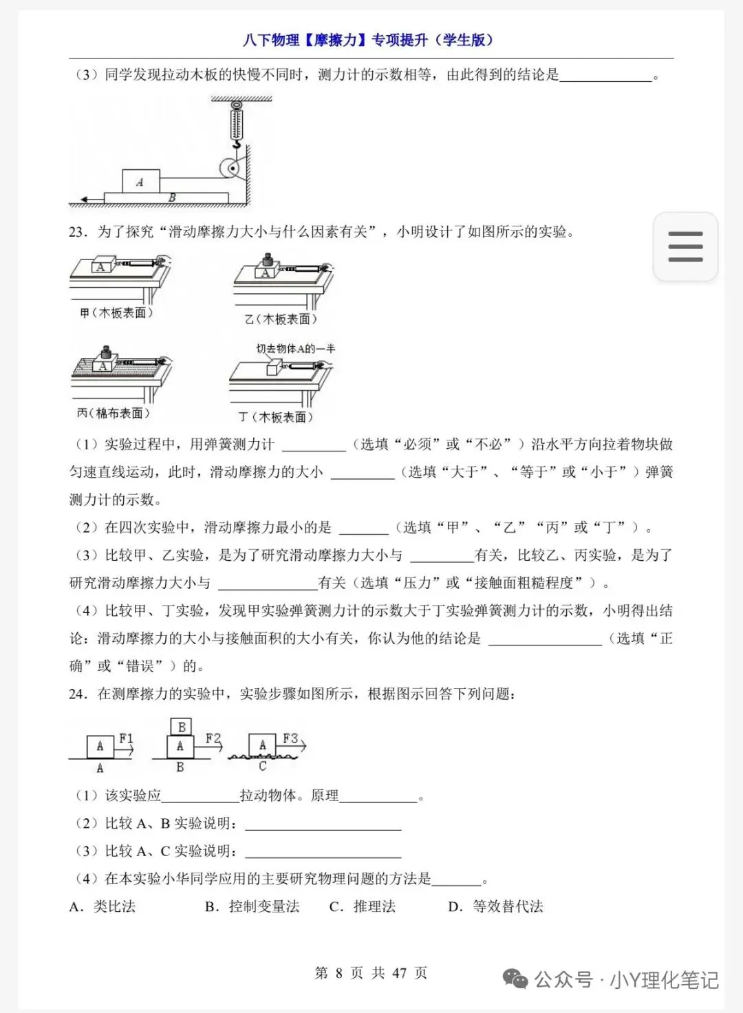 八年级下册物理学习笔记8.3摩擦力练习题