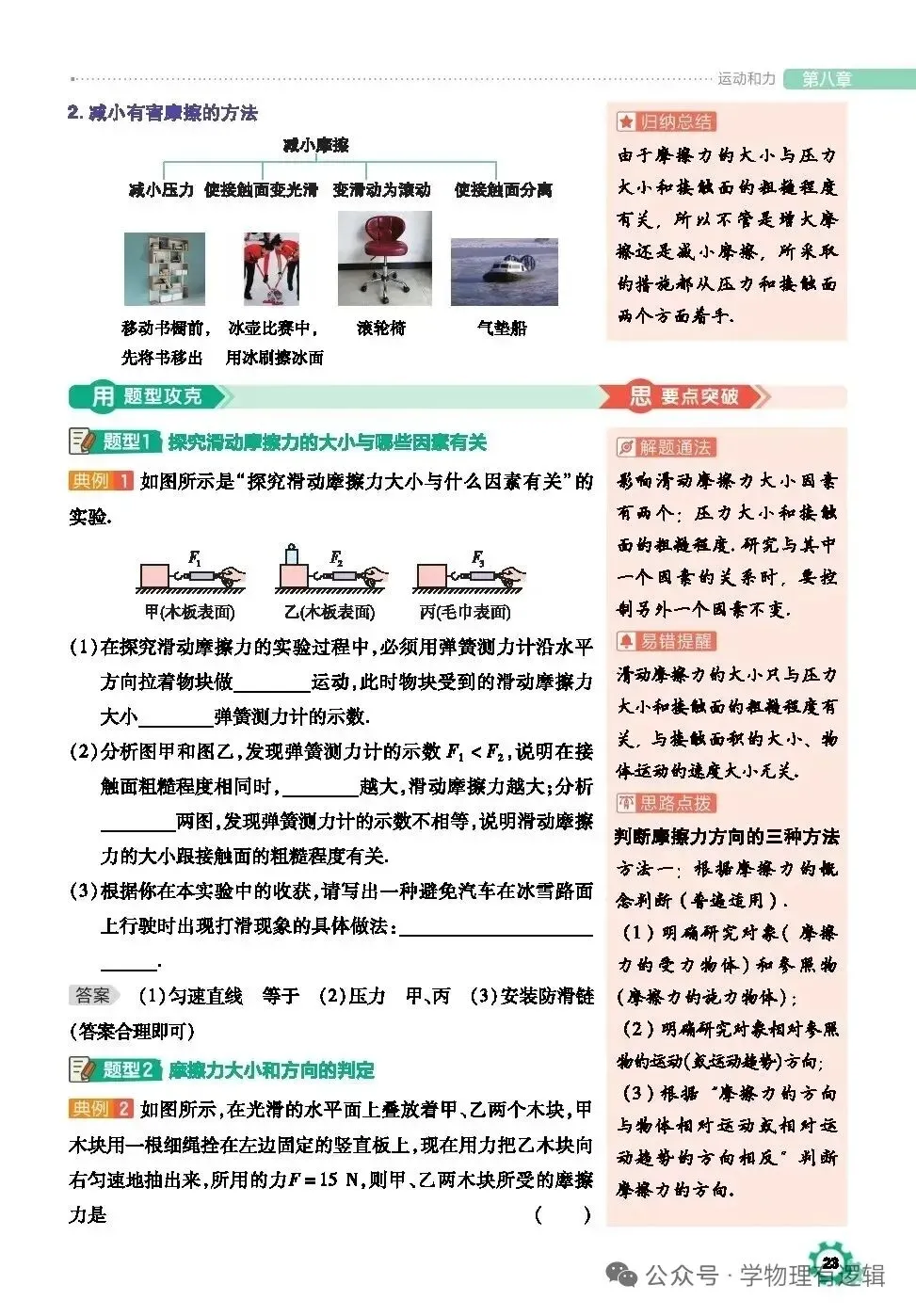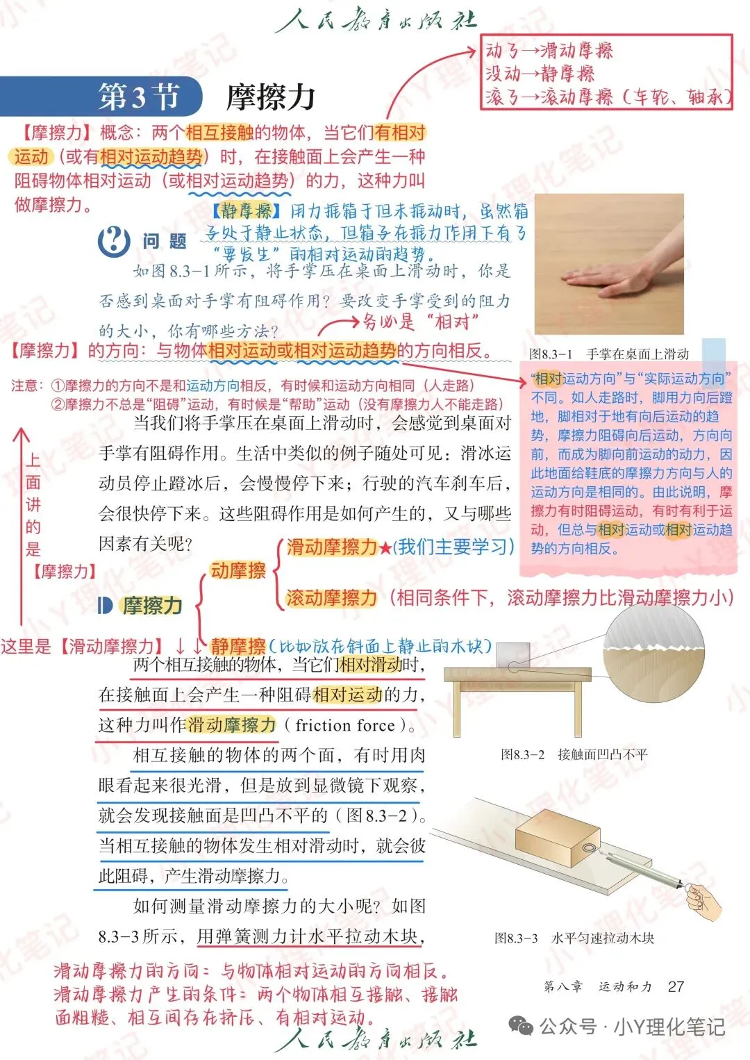 >八年级下册物理学习笔记8.3摩擦力