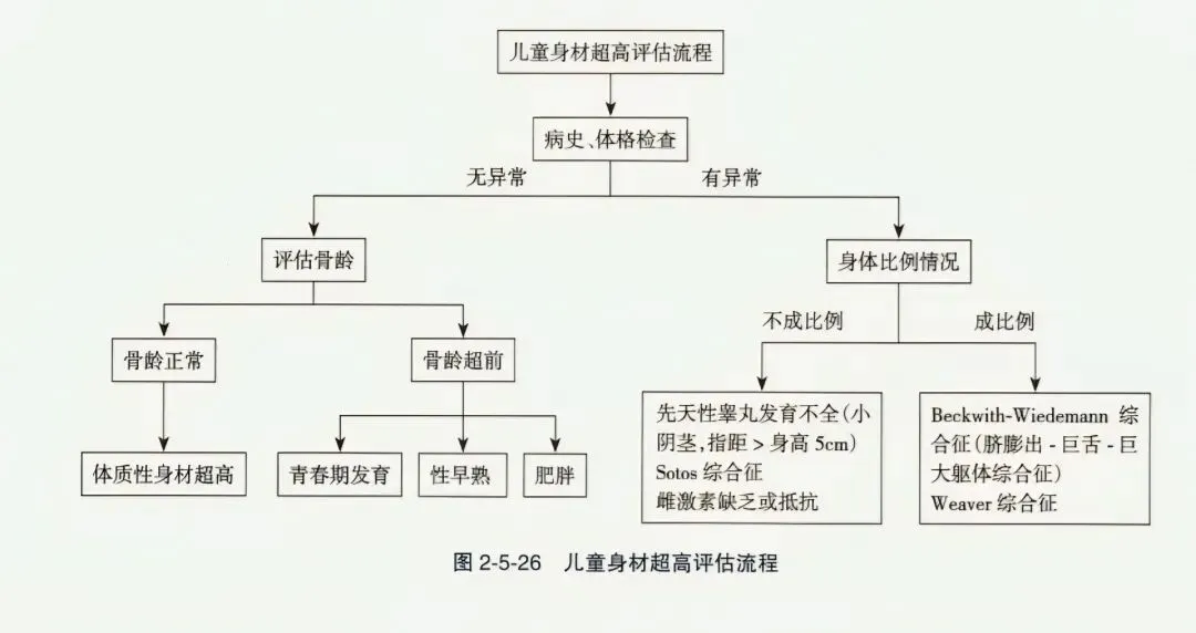 儿童身高(长)大于同年龄、同性别儿童正常均值加2个标准差(>+2SD)或>P97th为超高身材。与矮小儿童不同,多数超高身材的儿童为正常生长,仅少数为病理性。