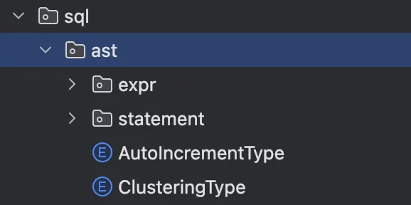 - • com.alibaba.druid.sql.ast.* 为通用 ast