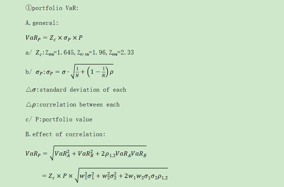 ①portfolio VaR: