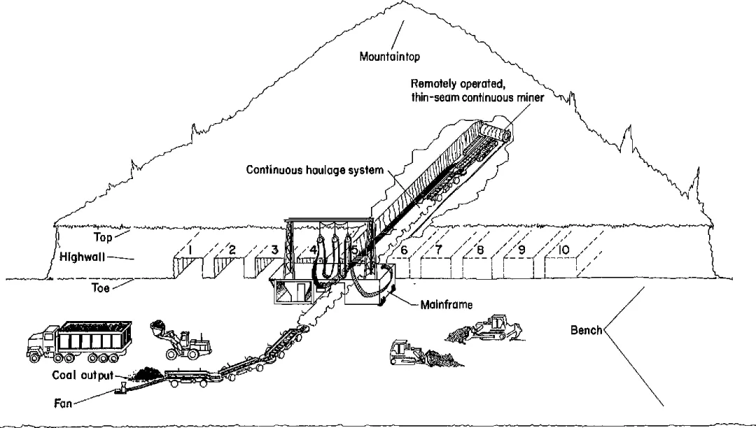 边帮开采(也叫端帮开采,Highwall Mining)是一种介于井工开采和露天开采的重要的采矿方法,通常在露天矿开采受经济或技术制约停采的地方应用,不仅能够有效回收残留煤炭资源,而且避免了井工开采的大规模经济投入。