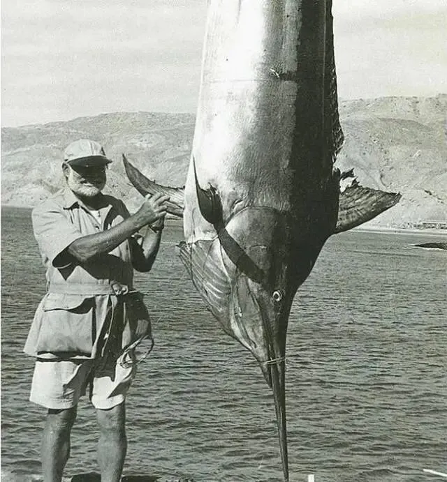 他从非洲返回后,经常驾驶他的“皮拉尔号”到墨西哥湾中的比米尼群岛、古巴和佛罗里达一带去钓“大鱼”。有一次,他在古巴东北海面遇到五十多条鲸鱼。他欣喜若狂,将鱼叉向鲸群掷去,竟刺中了一条六十多英尺长的巨鲸。