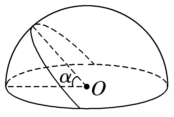 如图所示,电荷均匀分布的半球,在中心O处的电场强度的大小为E0,现沿图示方向过球心O从半球上切下一瓣,夹角为α=60°,则切下的一瓣在O点的电场强度大小为( )