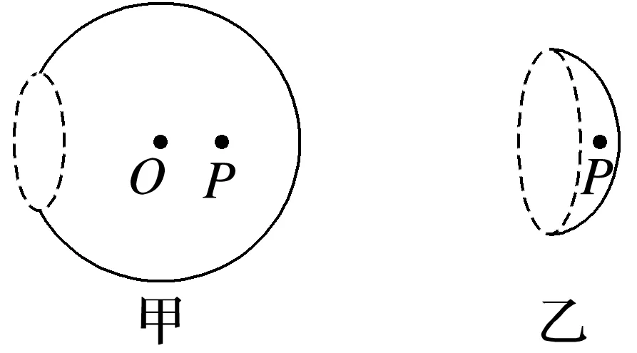 拓展 如图甲,若此球面大于半球,则P点的场强方向__________;如图乙,若此球面小于半球,则P点的场强方向________(均选填“向右”或“向左”)。