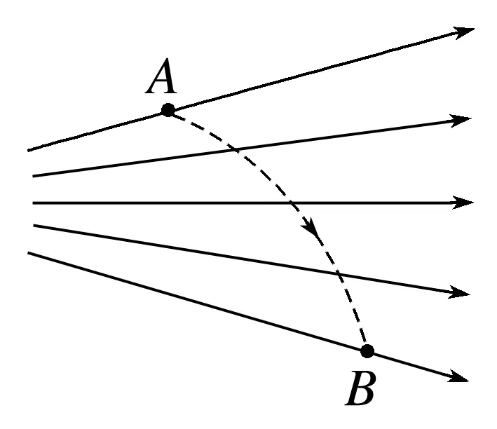 若实线为电场线,虚线为带电粒子的运动轨迹,带电粒子只受静电力的作用从A点向B点运动。回答以下问题: