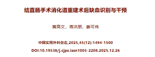 吻合口缺血是结直肠术后吻合口漏的首要始动因素,早期隐匿、晚期致命;